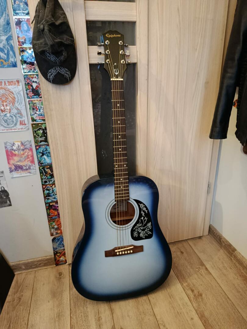 Sprzedam gitarę akustyczną Epiphone Starling Square Shoulder Starlight Blue. Gitara jest w stanie wizualnym bardzo dobry, jest jedynie nieco zakurzona. Posiada oryginalny oraz wyjątkowy wygląd. Jest w pełni sprawna technicznie, trzeba jedynie wymienić struny oraz podnieść akcję, co można zrobić samemu lub u lutnika :) Gitara była mało używana, dlatego chcę ją sprzedać.